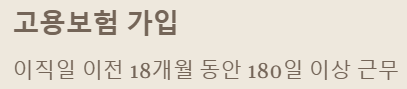 - 고용보험 가입 기간: 이직일 이전 18개월(초단시간 근로자의 경우 24개월) 동안 고용보험 가입 사업장에서 180일 이상 근무해야 합니다. 여기서 180일은 실제 근무한 일수를 의미해요.