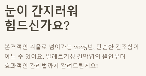 제가 겪어본 바로는, 눈이 간지러운 것을 넘어 왠지 모르게 눈이 따끔거리고 이물감이 느껴지면서 뻑뻑한 느낌이 들 때도 있었어요. 그리고 아침에 일어나면 눈곱이 평소보다 많이 끼거나, 빛에 유난히 눈이 부시는 현상도 경험했고요. 여러분도 혹시 이런 증상들을 겪고 있지 않으신가요?