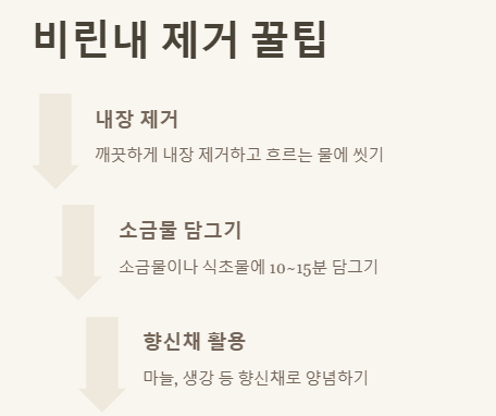 A3: 손질할 때 내장을 깨끗이 제거하고 흐르는 물에 잘 씻어주는 것이 중요해요. 그 후 소금물이나 식초물에 10~15분 정도 담가두면 비린내를 효과적으로 줄일 수 있습니다. 그리고 마늘, 생강 등 향신채를 활용한 양념을 사용하는 것도 좋은 방법이에요.