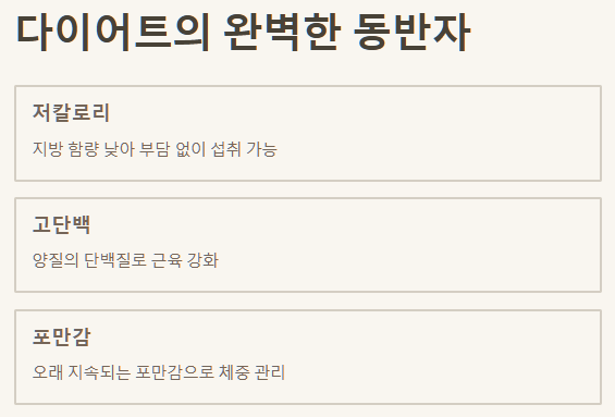 ✔️ 저칼로리 고단백: 다이어트와 건강 관리에 아주 좋아요.