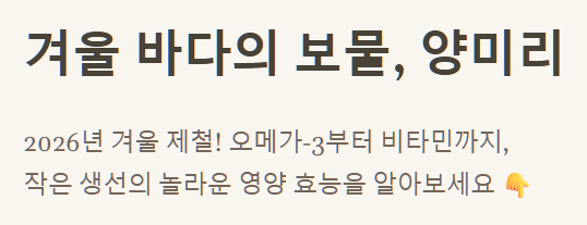 차가운 바람이 불어오기 시작하는 2026년 겨울, 우리 식탁에 특별한 손님이 찾아옵니다. 바로 겨울철 별미, 양미리인데요. 저는 솔직히 양미리를 처음 접했을 때, 이 작은 생선이 과연 얼마나 맛있을까 반신반의했어요. 그런데 말이다, 한 번 맛보고 나니 그 담백하면서도 고소한 맛에 완전히 반해버렸지 뭐예요. 특히 요즘처럼 면역력이 중요한 시기에는 그 효능이 더욱 빛을 발한답니다.