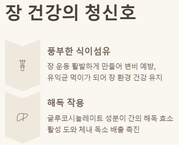 3. 장 건강 개선 및 디톡스: 풍부한 식이섬유로 쾌변을 돕고 독소 배출을 촉진해요.