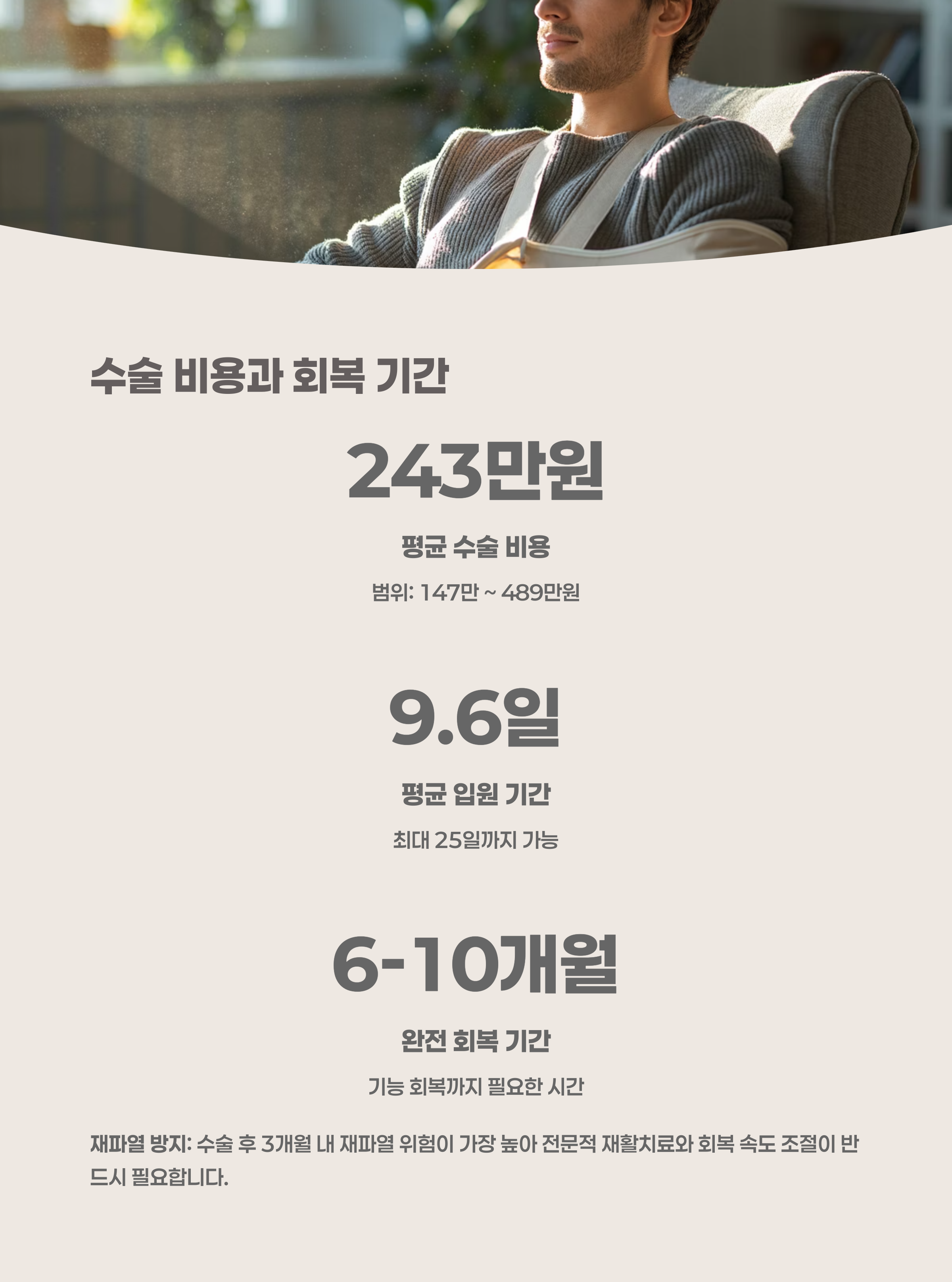 | 평균 수술 비용 | 약 243만원(범위: 147만 ~ 489만원) |