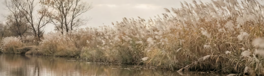 갈대는 억새와 달리 강가, 호수, 습지 등 물기가 많은 곳에서 주로 자랍니다. 꽃 이삭은 9~11월에 피며, 진한 갈색이나 흑갈색 등 어두운 색을 띠고 빗자루처럼 뻣뻣하고 가지런합니다. 잎은 억새보다 넓고 두꺼우며 억세서 거친 느낌이 강해요. 잎 끝도 위로 뻗어 올라가는 경향이 있어 전체적으로 강인하고 묵직한 느낌을 줍니다.