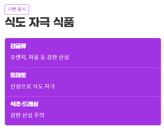 2. 식도를 자극하고 염증을 악화시키는 식품