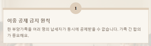 • 중복공제 금지: 한 부양가족을 여러 명의 납세자가 동시에 공제받을 수 없어요!