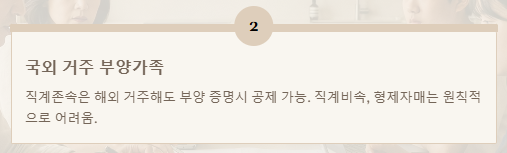 • 형제자매: 원칙적으로 동거해야 합니다. 이 경우는 동거 요건이 좀 더 엄격하다고 볼 수 있죠.