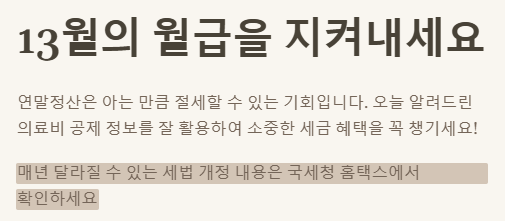 매년 달라질 수 있는 세법 개정 내용을 국세청 홈택스에서 확인하는 것이 가장 정확합니다.
