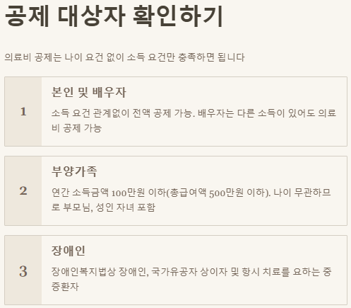 - ✅ 의료비 공제는 본인 및 소득 요건을 충족하는 부양가족의 의료비에 적용됩니다. (나이 요건 X)