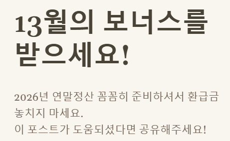 2026년 연말정산을 잘 준비하셔서 모두 '13월의 보너스'를 넉넉히 받으시길 바랍니다!