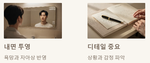 • 나의 자아와 이상향: 내가 되고 싶은 모습, 추구하는 가치, 숨겨진 재능.