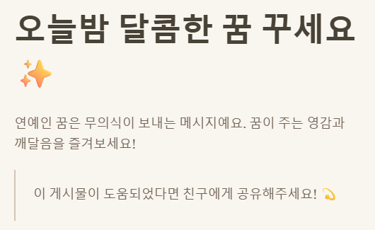 • 상황별 해석이 중요: 단순히 연예인이 나왔다고 다 같은 꿈이 아니에요. 꿈속 상황, 연예인의 행동, 나의 감정 등 디테일이 중요합니다.