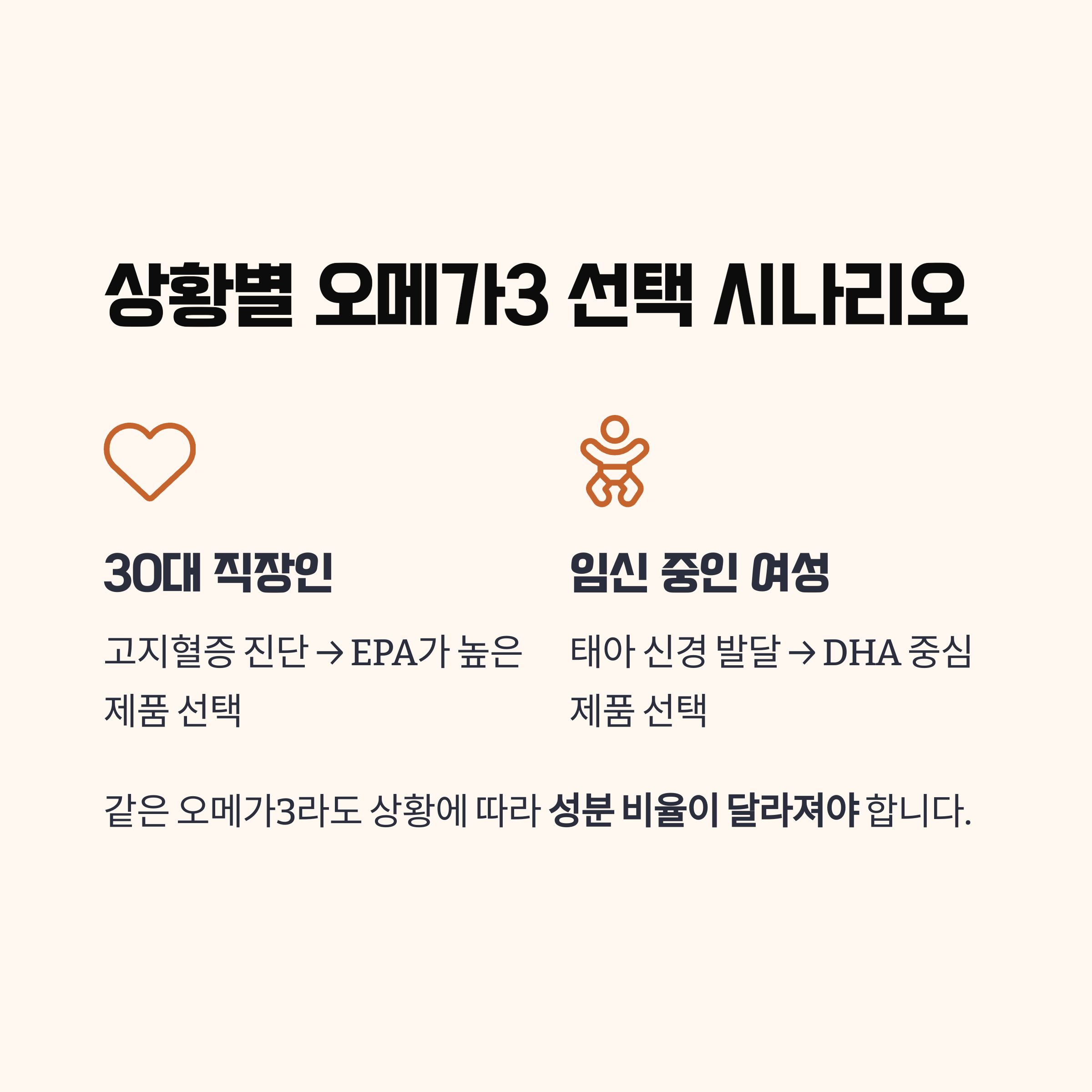 같은 오메가3라도 상황에 따라 성분 비율이 달라져야 한다는 점이 중요합니다.