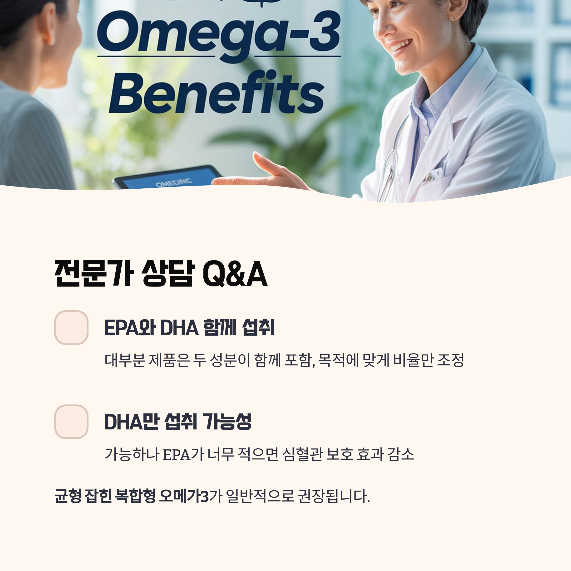 균형 잡힌 복합형 오메가3가 일반적으로 권장됩니다."
