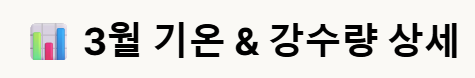 | 기간 | 평균 최고 기온 (℃) | 평균 최저 기온 (℃) | 강수량 (mm) |