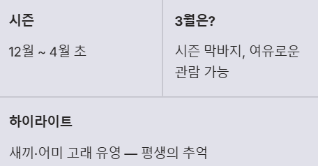 3월은 비록 시즌의 막바지이긴 하지만, 오히려 성수기보다 조금 더 여유롭게 고래를 만날 수 있는 기회가 될 수도 있습니다.