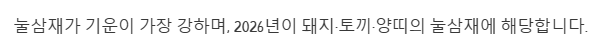 1. 2026년, 어떤 띠가 삼재에 해당될까요?