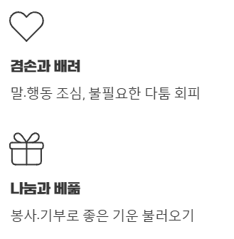 내가 옳다고 생각하더라도 한 번 더 다른 사람의 입장에서 생각해 보는 배려심이 중요해요. - 긍정적인 마음가짐: 아무리 힘든 상황이라도 긍정적인 태도를 잃지 않으려 노력하는 것이 중요합니다.
