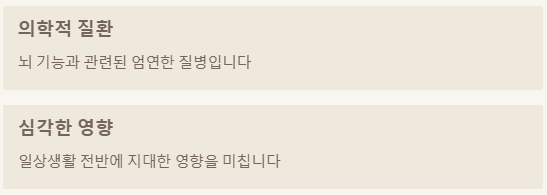 - 집중력, 기억력 저하: 책을 읽거나 대화에 집중하기 어렵고, 최근 일들을 잘 기억하지 못하는 등 인지 기능이 저하될 수 있어요.