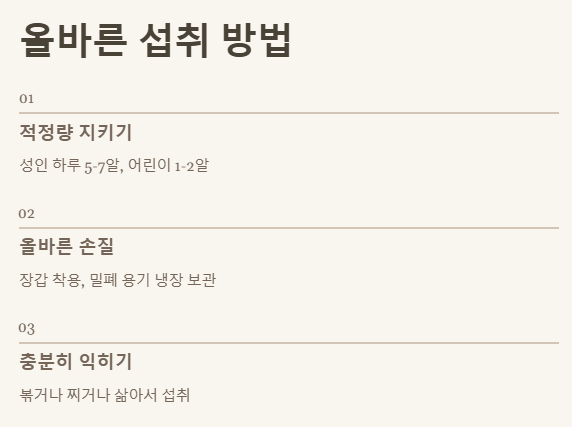 3. 성인 기준 하루 5~7알, 어린이는 소량만 섭취하는 것이 안전합니다.