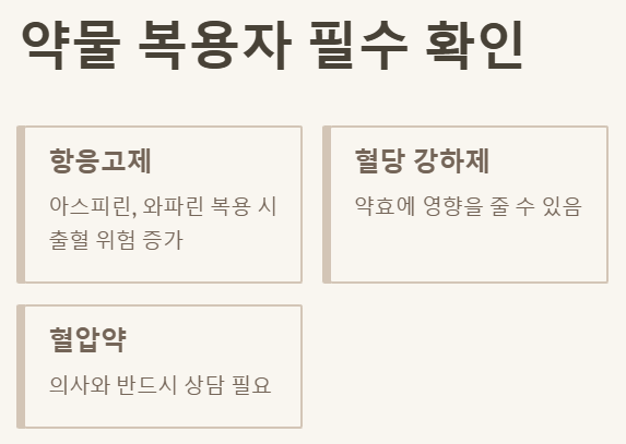 4. 항응고제 복용자, 임산부, 알레르기 체질은 섭취 전 전문가와 상담하세요.