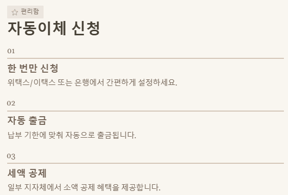 ✅ 자동이체 활용: 납부 기한 걱정 없이 편리하게 납부하고 소액 공제까지!