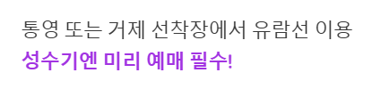 주요 선착장은 경남 통영과 거제에 있습니다.