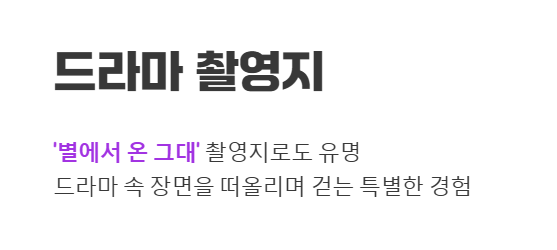 아, 그리고 드라마 '별에서 온 그대' 촬영지로도 유명하다는 사실, 알고 계셨나요?