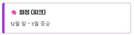 | 3월 말 ~ 4월 초 | 마무리 | 늦둥이 꽃들과 함께 봄의 기운이 완연해져요. |