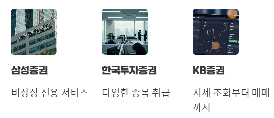 최근에는 많은 증권사들이 비상장주식 중개 서비스를 제공하고 있어요.