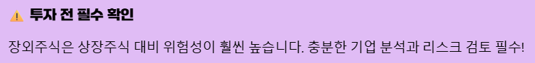 ⚠️ 주의! 장외주식은 상장주식에 비해 위험성이 훨씬 높습니다.