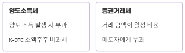 - 양도소득세: 비상장주식을 양도하여 발생하는 소득에 대해 부과되는 세금이에요.