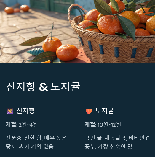 🗓️ 주요 제주 귤 품종별 제철과 특징 (2025년 기준)
