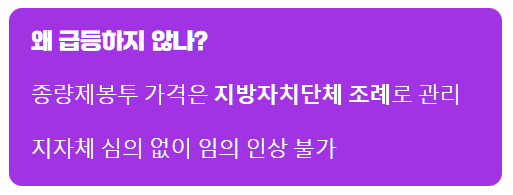 • 가격 인상은 지자체 조례로 통제되므로, 정부 및 지자체 공식 발표를 기다려야 합니다.