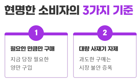 꼭 필요한 만큼만 구매하고, 상황을 침착하게 지켜보는 것이 현명합니다.