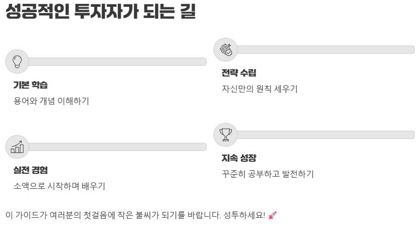 - ✅ 자신만의 투자 원칙 세우기: 남 따라 하지 말고, 철저한 분석으로.