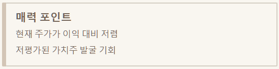 PER이 낮다는 것은 현재 주가가 기업의 이익에 비해 저렴하다는 의미로 해석될 수 있어요.