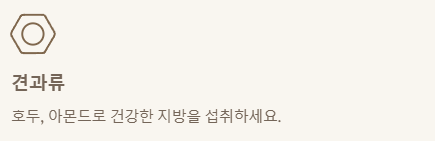 | 지방 | 견과류, 올리브 오일, 아보카도, 아마씨 | 버터, 마가린, 트랜스지방 함유 식품 |