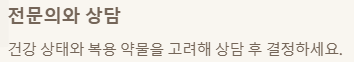 - 전문의와 상담: 개인의 건강 상태와 복용 중인 약물이 있다면 반드시 의사 또는 약사와 상담 후 복용 여부를 결정하세요.
