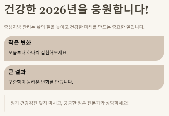 중성지방 수치를 관리하는 것은 단순히 하나의 건강 지표를 개선하는 것을 넘어, 우리의 삶의 질을 높이고 건강한 미래를 만드는 아주 중요한 일입니다. 오늘 제가 알려드린 정보들이 여러분의 건강한 습관 형성에 작은 도움이 되었기를 진심으로 바랍니다. 작은 변화가 모여 놀라운 결과를 만들어낼 거예요. 여러분의 건강한 2026년을 응원합니다! 정기적인 건강검진 잊지 마시고, 궁금한 점이 있다면 언제든지 전문가와 상담하세요!