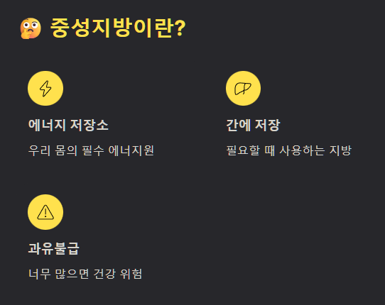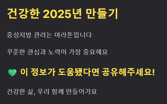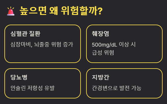 - ✅ 높은 중성지방은 심혈관 질환, 췌장염, 당뇨병, 지방간의 위험을 높여요. 절대 가볍게 보지 마세요!