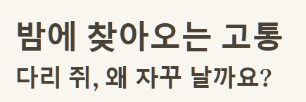 | 다리에 쥐가 자주 나는 이유, 원인부터 예방법까지 (0) | 2026.01.07 |