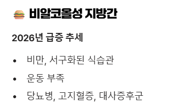 최근 2026년에는 이 유형의 지방간이 급증하는 추세라고 합니다.