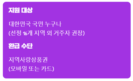- 지원 대상: 대한민국 국민 누구나 (단, 선정된 16개 지역 외 거주자 권장)
