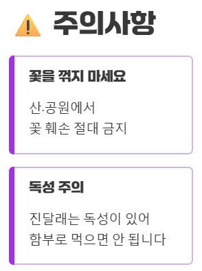 - 환경 보호: 진달래는 눈으로만 즐기고, 꽃을 꺾거나 쓰레기를 버리지 않아 아름다운 자연을 보호해야 합니다.