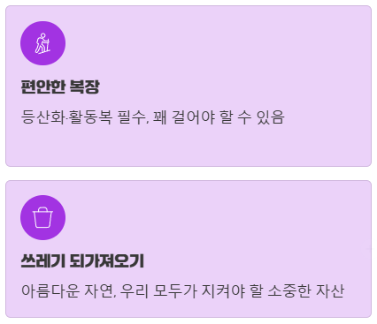 예쁜 사진을 찍는 것도 중요하지만, 편안한 등산화나 운동화를 신고 옷차림도 활동하기 좋게 입는 것이 중요합니다.