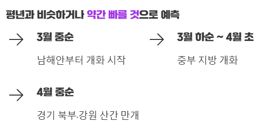 역시 따뜻한 남쪽부터 시작해서 점차 북상하는 일반적인 경향을 보일 거예요.