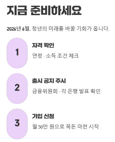 청년미래적금은 ‘청년층의 단기 목돈 마련 및 자산 형성 지원’이라는 뚜렷한 목적을 가지고 2026년 6월 도입될 예정이에요.