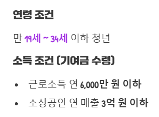 - 연령 조건: 만 19세부터 34세 이하의 청년.