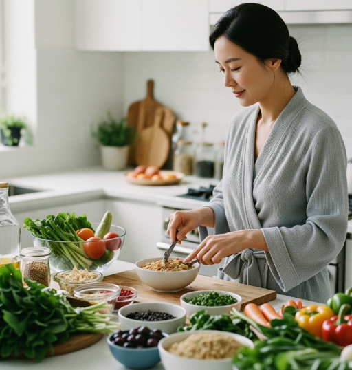 아침에 통곡물 시리얼이나 오트밀을 먹고, 매 끼니 푸른 채소를 충분히 먹는 습관을 들이는 게 좋더라고요.